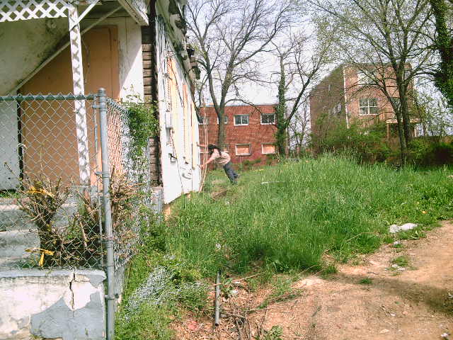 development. Although, the website indicates that the plan is to build affordable housing by claiming vacant lots and old buildings using the power of “eminent domain, acquisition and disposition” our historical reality is that usually we are pushed out of our neighborhoods to make way for “affordable” condos and townhouses, a tactic known as gentrification. We spent months speaking with several offices of the DC government and actually had an advocate working for us, however all that it amounted to was disappointment when we were told to look elsewhere. However, we felt we had a responsibility to the community and so we moved forward to adopt the area through the city’s Adopt-A-Block program which allows for organizations, in conjunction with the community, to conduct quarterly block clean ups.